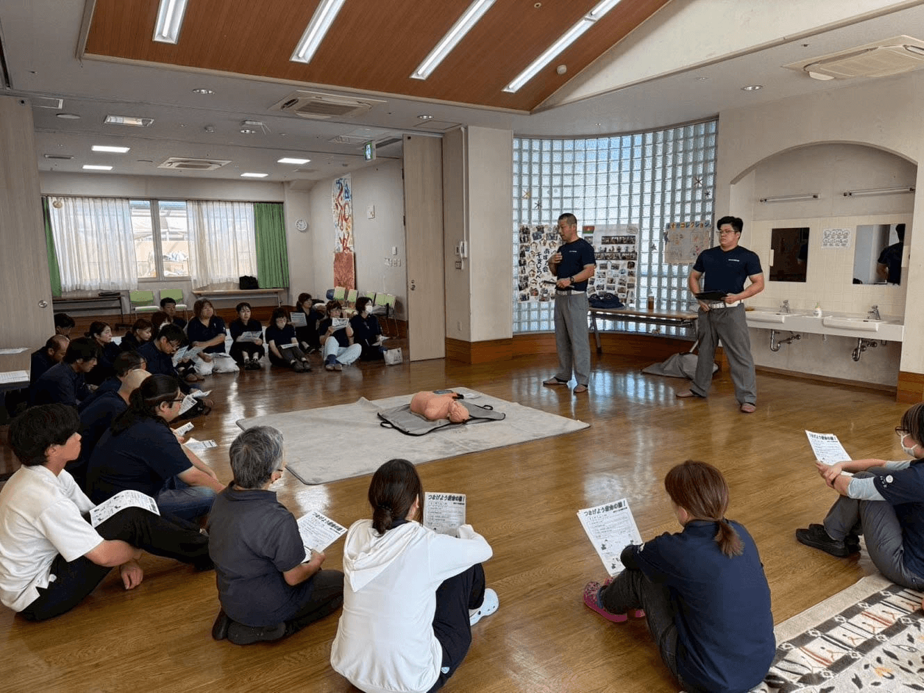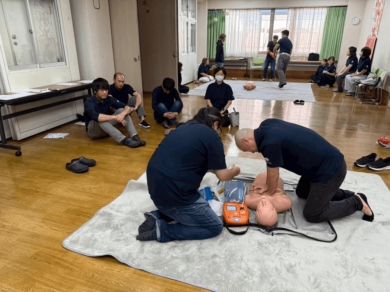 最初は緊張していた職員も、回数を重ねるうちに声を掛け合いながら真剣に取り組み、もしもの時に落ち着いて行動ができるよう、実践的な訓練を行うことができました。