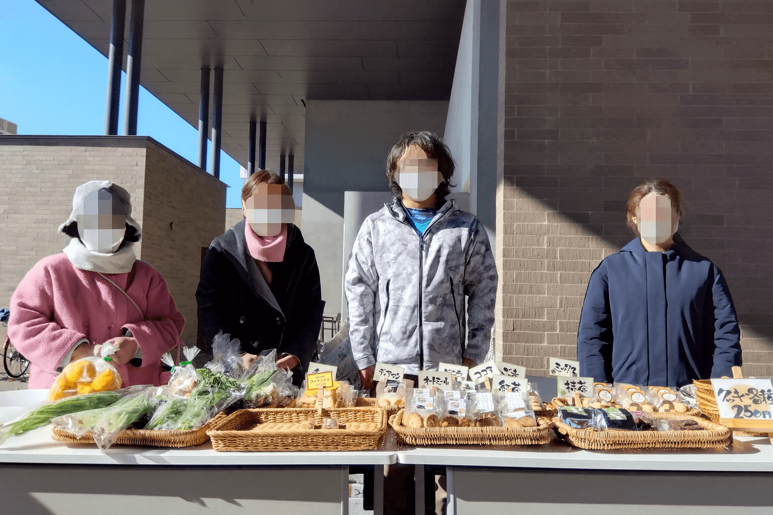 冷たく強い風が吹く中でしたが、利用者のみなさんは寒さに負けず、元気いっぱいに参加されていました。商品を丁寧に並べたり、お客様に声をかけたりと、それぞれの持ち場で活躍される姿がとても印象的でした。
