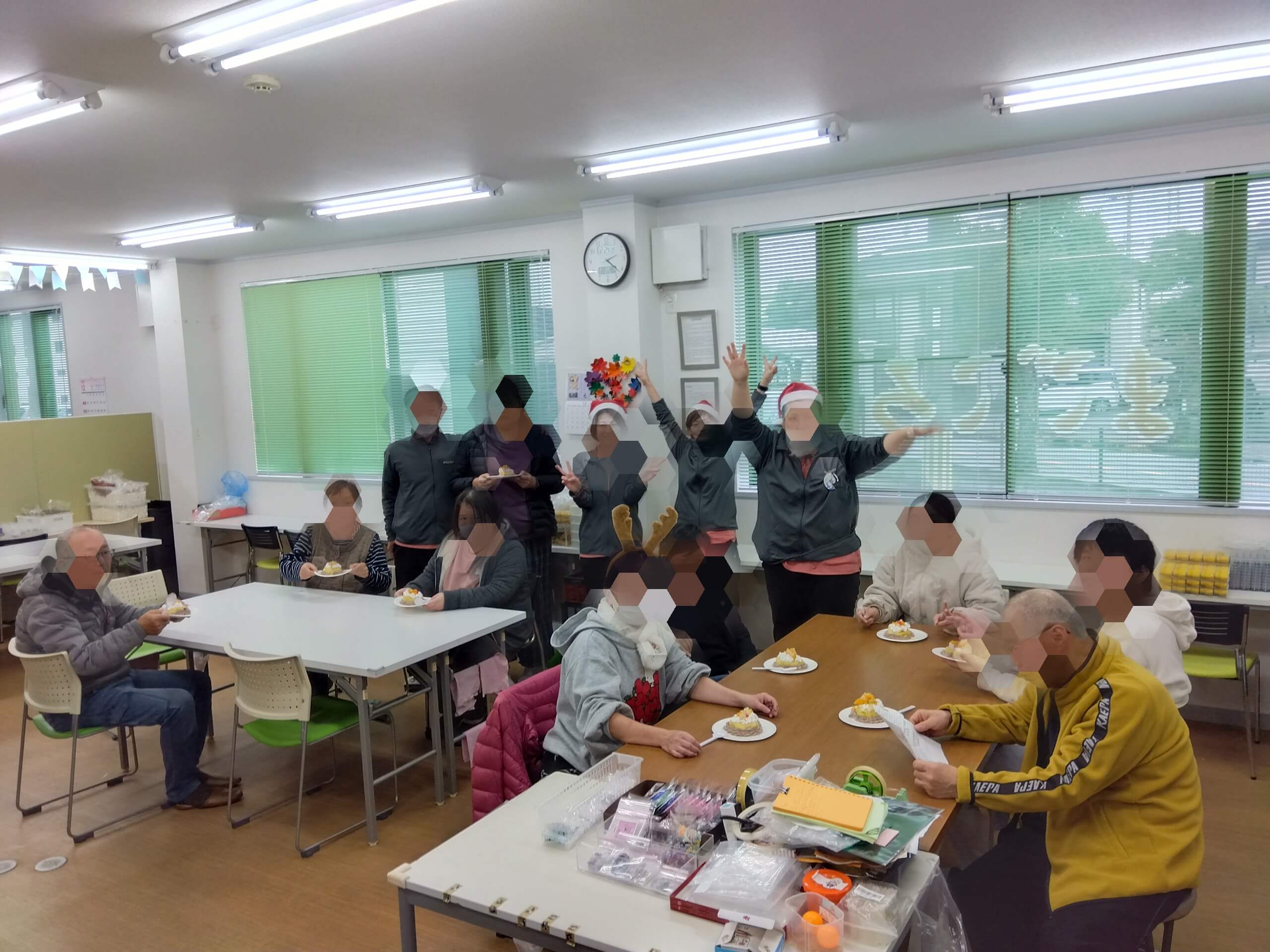 ちょうどクリスマス会の日に「まごころ」さんを訪ねたところ、みなさんの楽しそうな笑顔に出会い、写真を撮らせていただきました。