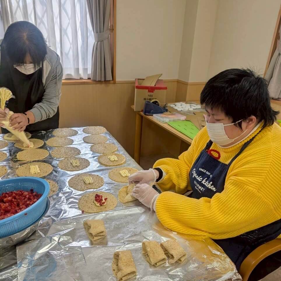 今年は恵方巻に見立てたクレープ作りに挑戦しました。生クリームやフルーツをトッピングして、みんなで美味しくいただきました。