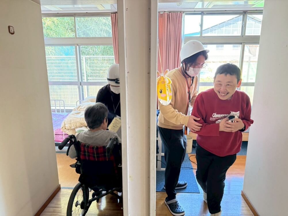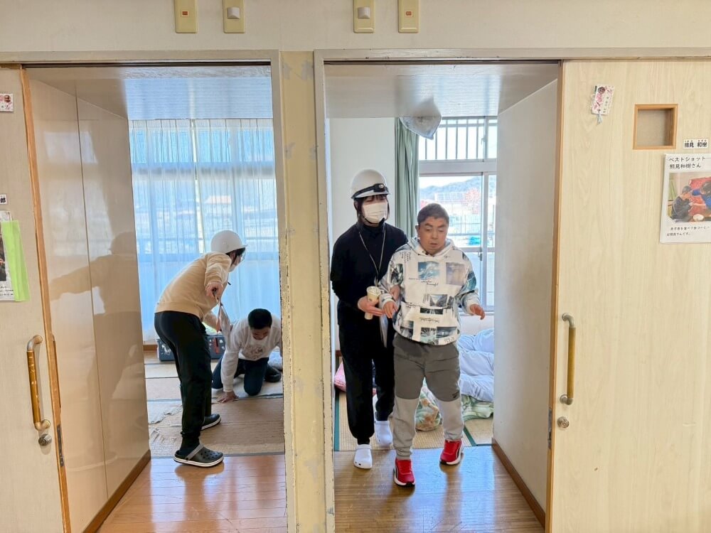 あすかの家では毎月避難訓練を行っています。避難経路や誘導方法の確認を行い、非常時を想定した動きについて職員全員で見直しました。